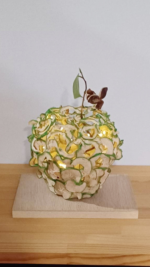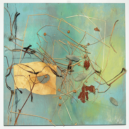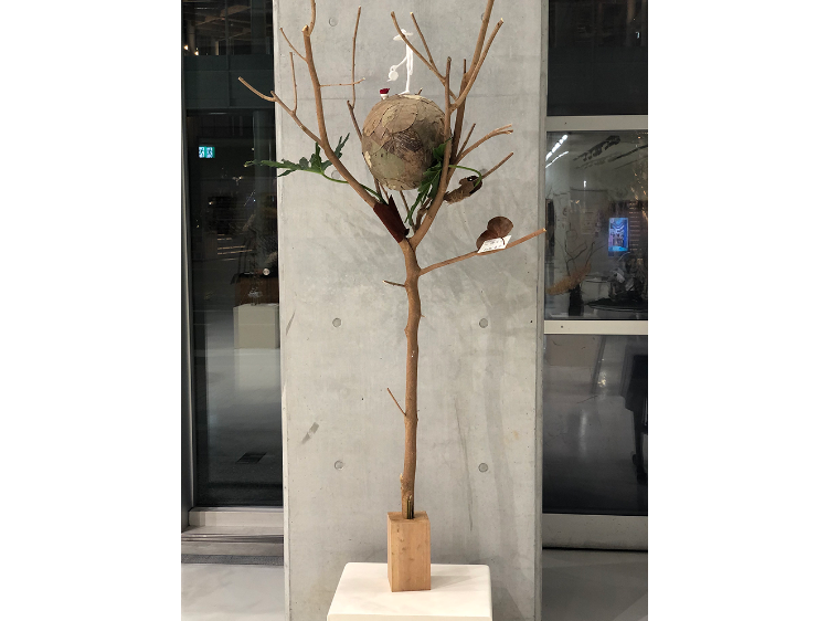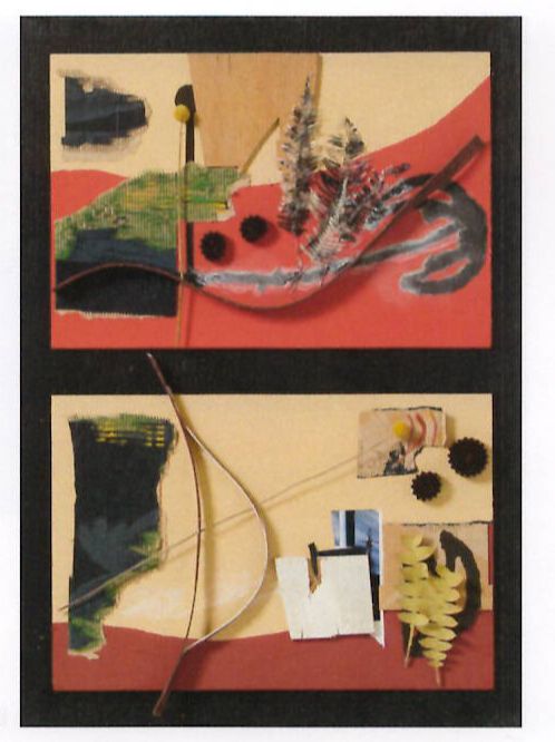 2つのシーンを1枚の絵のように仕上げました。使用した材料は木製カヤックのパーツ。特にユニークな箇所を使い、切り取ったり、色付けしたり。物語風に制作しました。
