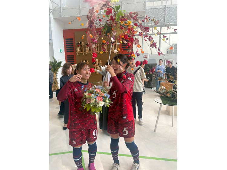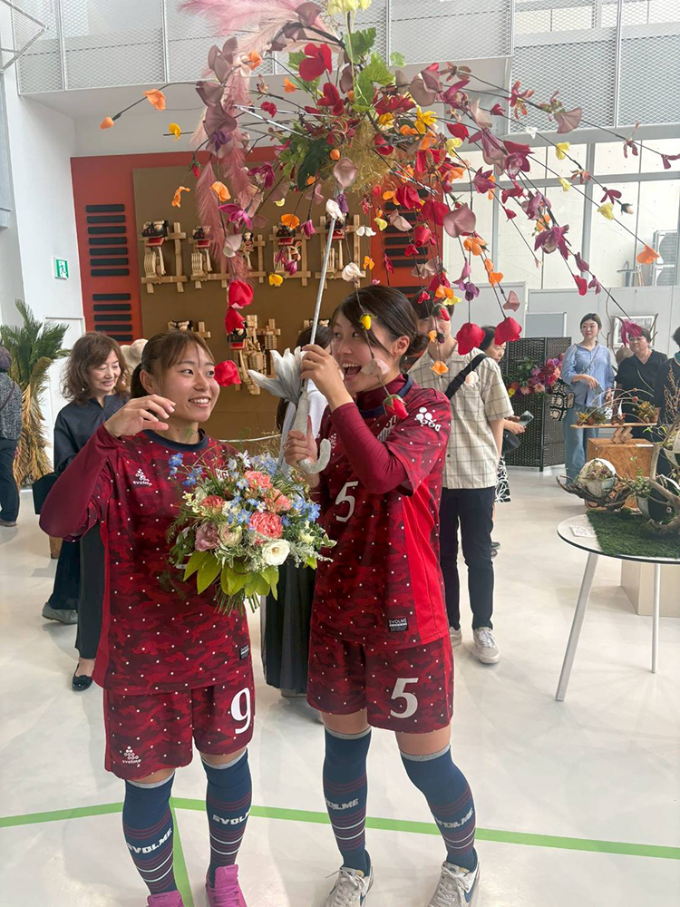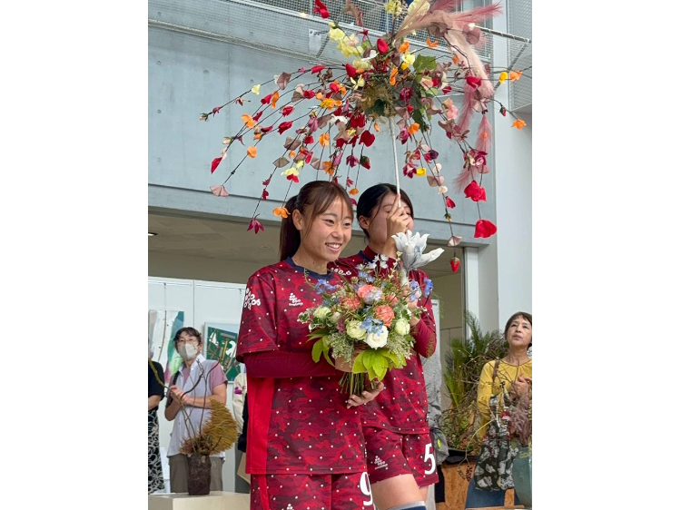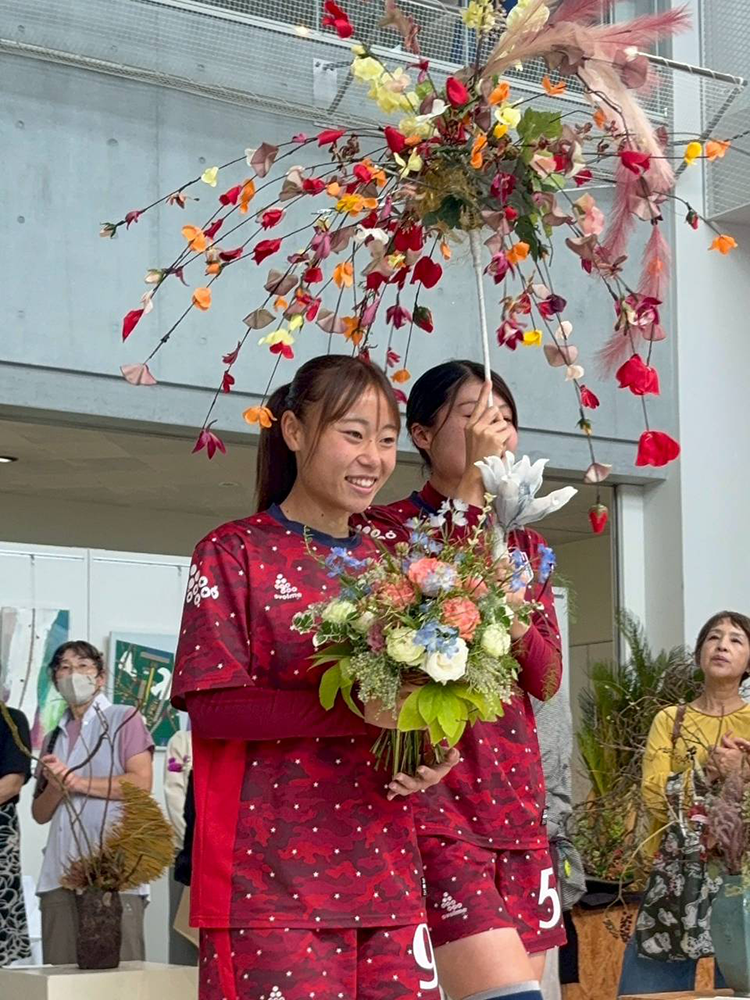 八戸学院大学 女子サッカー部コラボ フラワーショーの様子